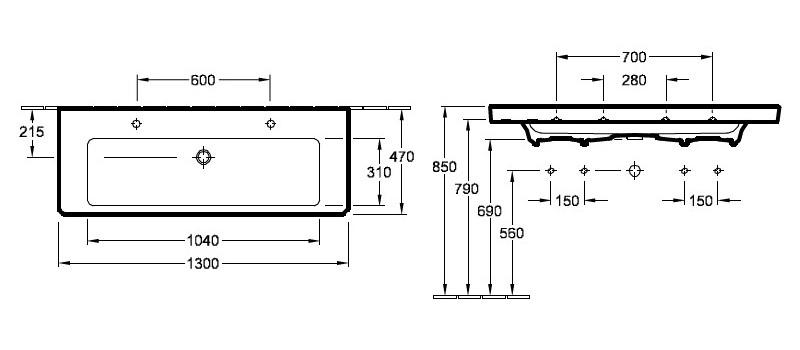 РАКОВИНА 130Х47 VILLEROY&BOCH SUBWAY 2.0, WHITE ALPIN (7176D201)