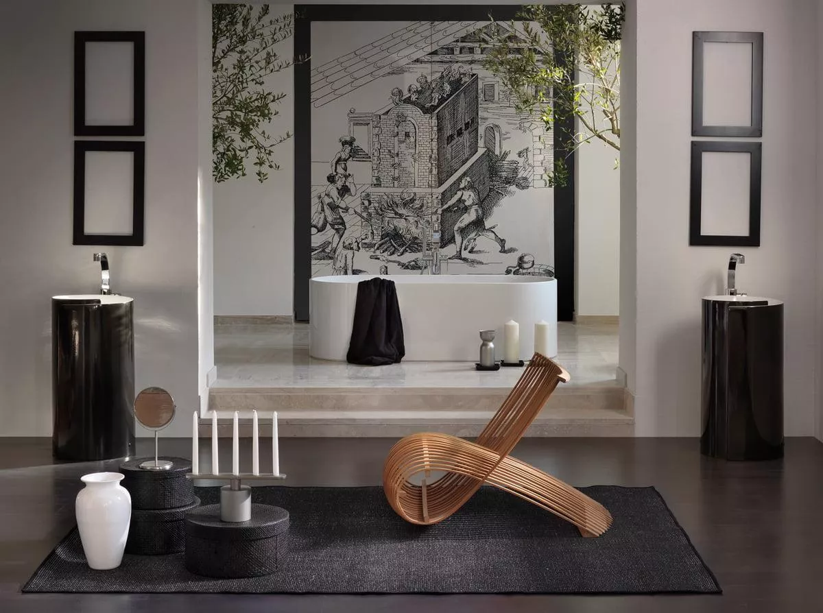 Овальная ванна изготовлена из Pietraluce, тонкого, высокопрочного материала, который не меняется со временем и характеризуется сочетанием квадратных форм и изогнутых линий. Овал может быть свободностоящим или прикрепленным к стене, и благодаря своей элегантности он может быть использован в любой линии коллекции Flaminia.