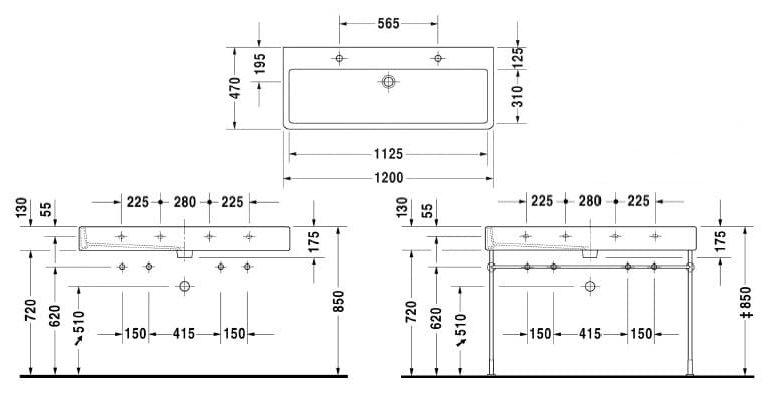 КЕРАМИЧЕСКАЯ РАКОВИНА 120 СМ DURAVIT VERO, БЕЛАЯ (0454120024)