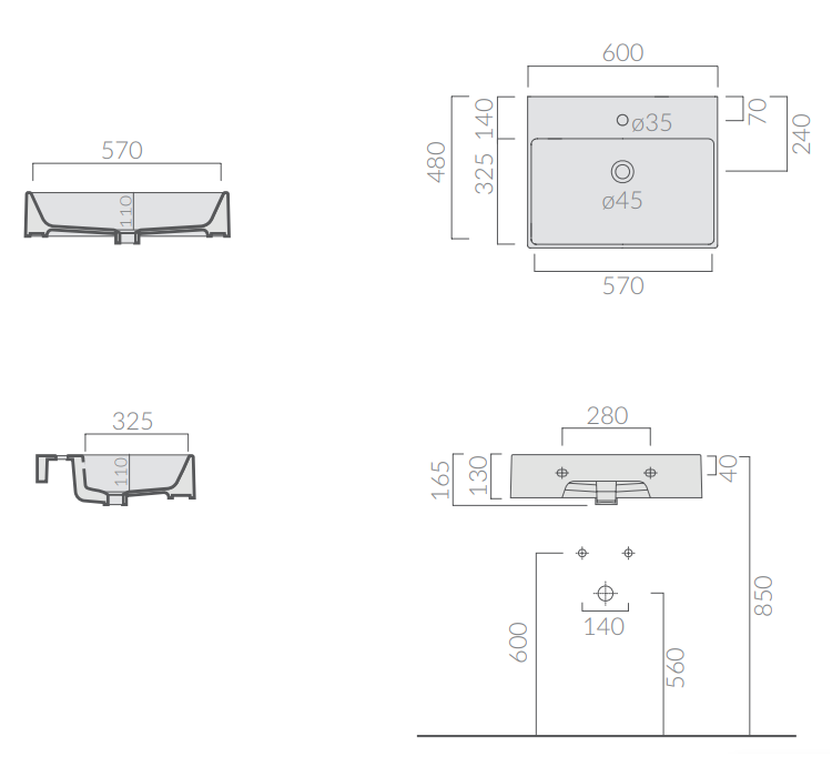 - установка: на столешницу или тумбу, подвесной