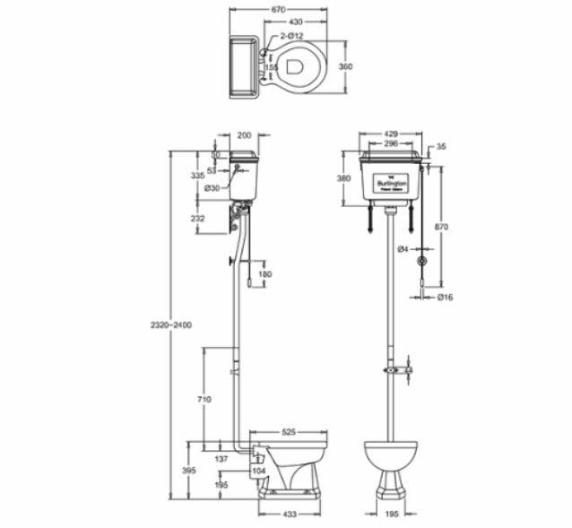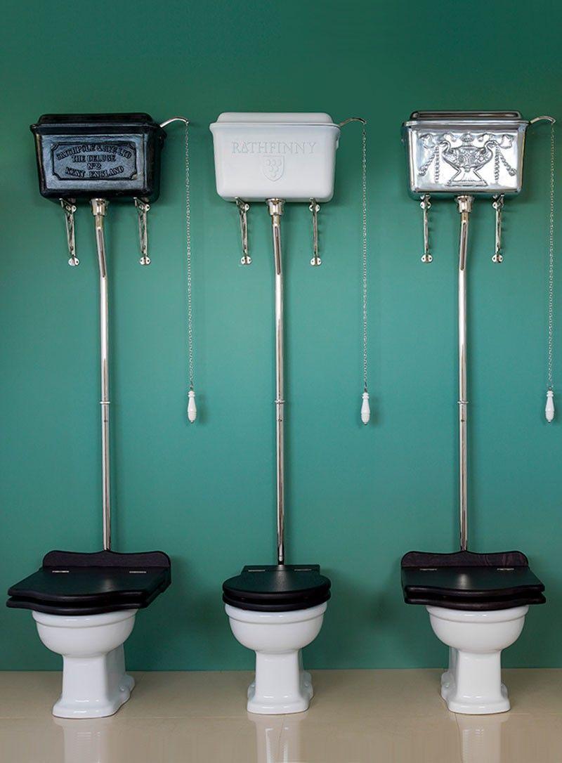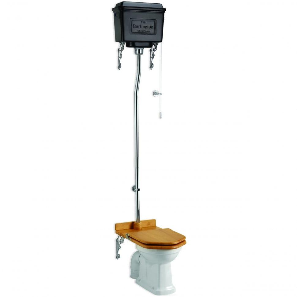 - в комплекте сливной механизм (черный алюминий), набор труб для высокого бачка (хром), кронштейны, ручка слива (хром)