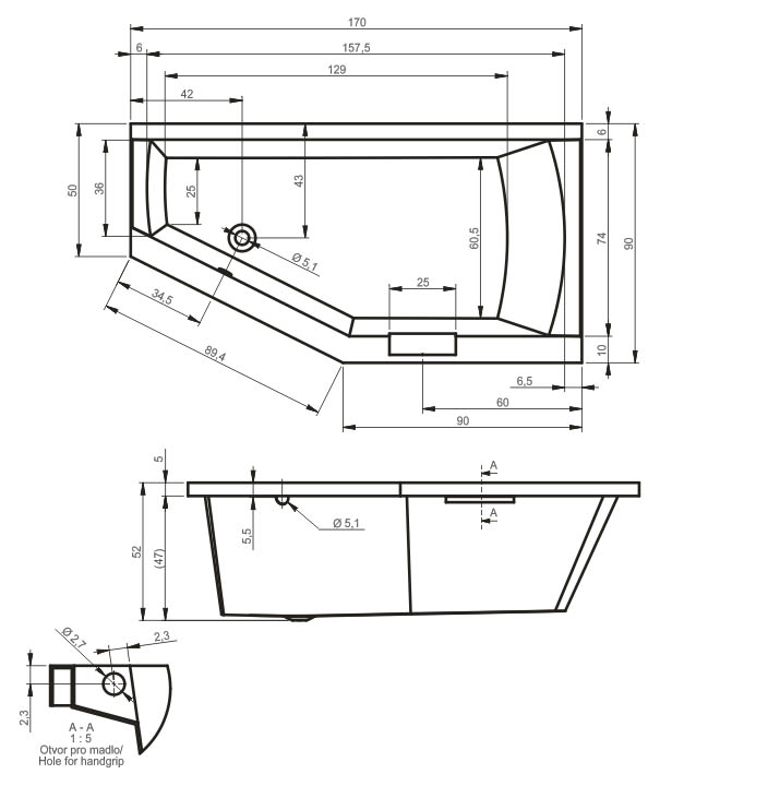 ВАННА АКРИЛОВАЯ RIHO GETA LEFT 170X90 СМ (B032001005)