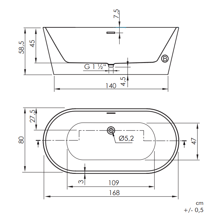 - сливное отверстие по центру