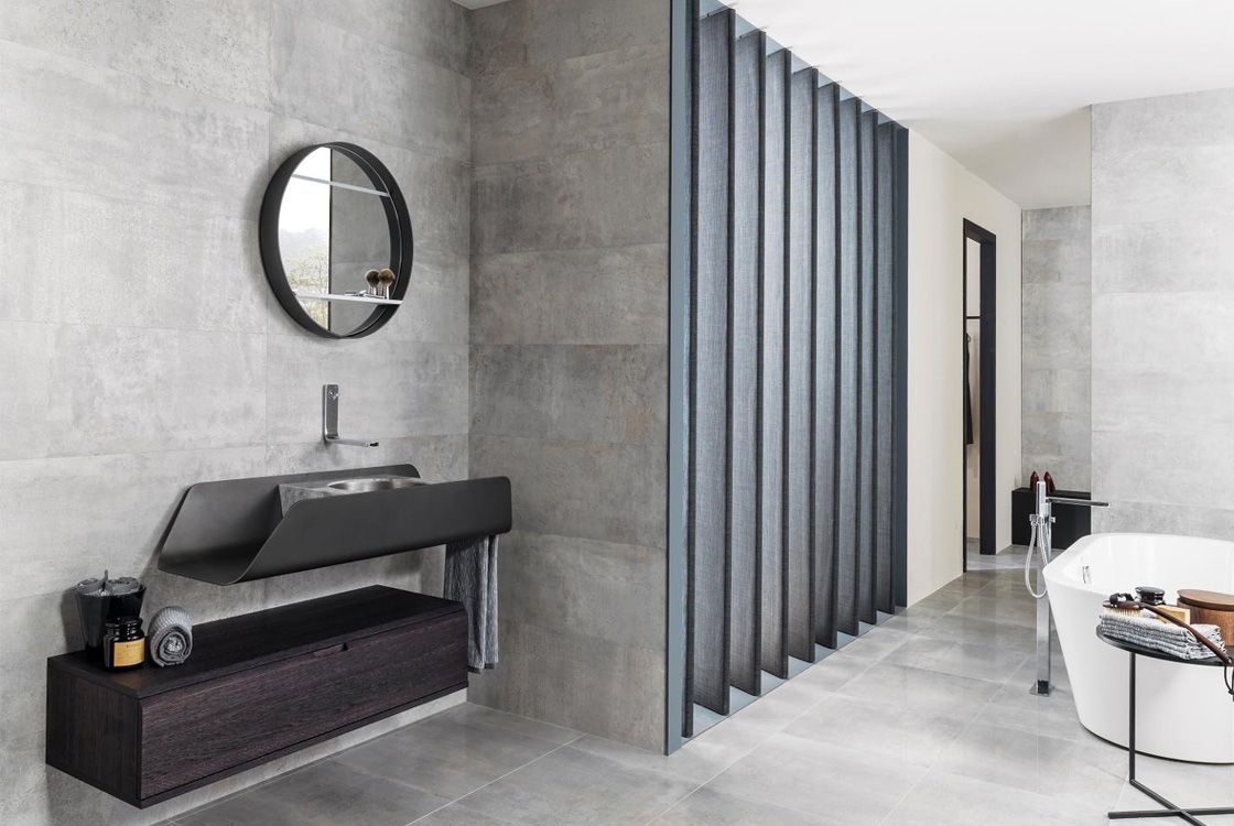 Фото плитки PORCELANOSA METROPOLITAN SILVER XL 45X120 из коллекции PORCELANOSA METROPOLITAN